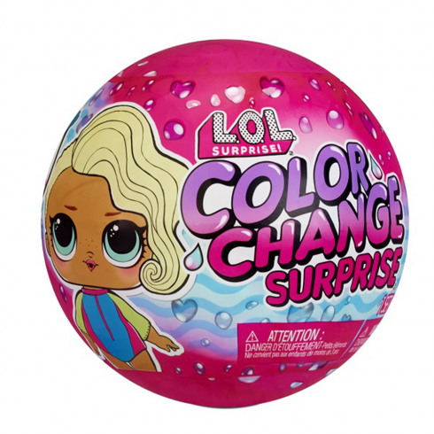 Новая серия куколок LOL Surprise Color Change Dolls Asst in PDQ представлена 12 новыми персонажами. Внутри шара находятся 7 сюрпризов: куколка, одежда, обувь, аксессуар, бутылочка, стикер и ребус. Куколка и шар умеют менять цвет в воде.